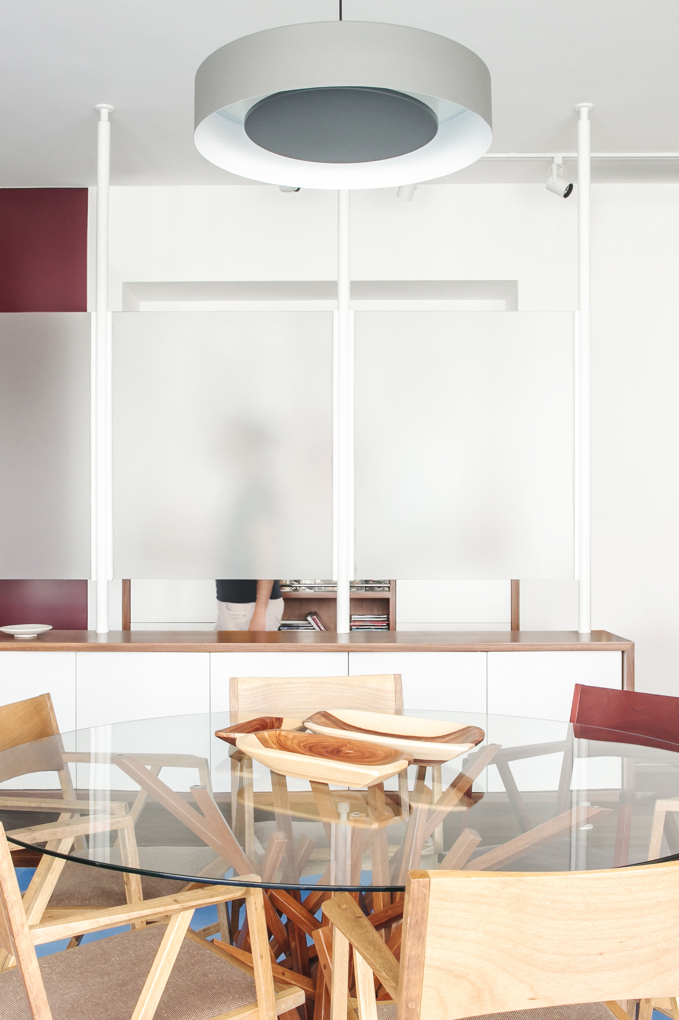 um armário/painel suspenso reorganiza a circulação do apartamento,