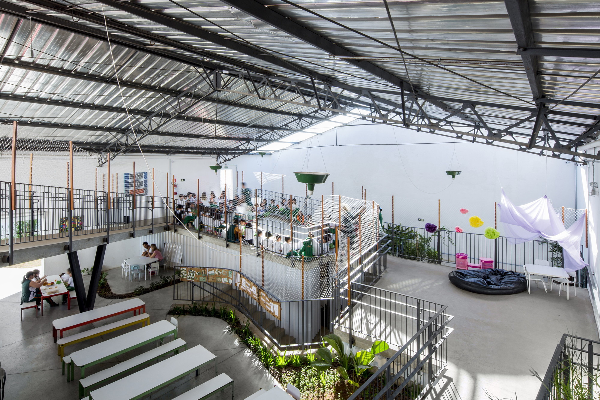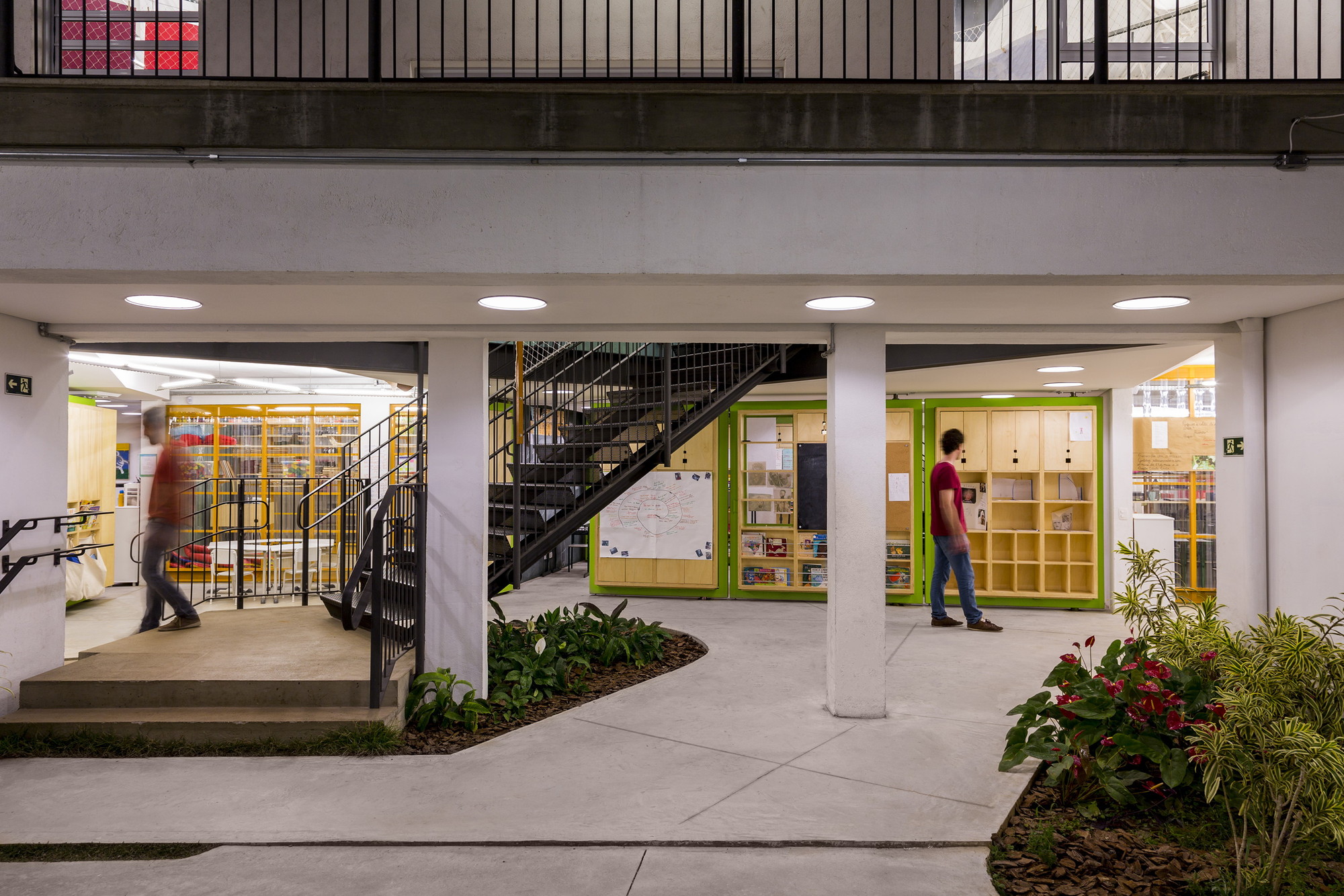 Uma pesquisa feita pelo escritório através da captação de vídeos para analisar a pós-ocupação, demonstra a apropriação dos diferentes espaços pelos alunos e educadores para diferentes atividades: grupos de crianças desenvolvem uma pesquisa na sala, aulas expositivas acontecem fora das salas, alguém joga xadrez no banco, uma menina faz uma leitura escondida embaixo da escada, um sarau na rampa ou uma reunião de professores nas mesas do refeitório. Apropriações estas que acabam por validar o projeto como catalizador de apropriações e como aparato que expõem os alunos aos conflitos inerentes do convívio coletivo.