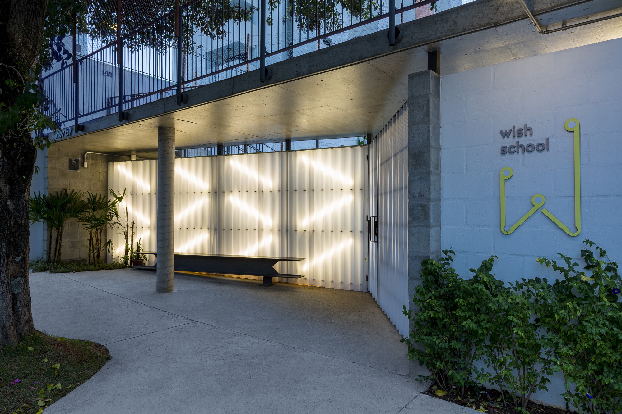 projeto 2016, obra 2016, área construída 1166m², cliente wish school. autores alexandre gervásio, erico botteselli, lucas thomé e pedro de bona, colaboradores nathália lorena, liene baptista, thaís coelho e vinícius costa, mediador, caio vasão, projeto estrutural telecki arquitetura de projetos, carol milani projeto paisagístico tristan bonzon,rafaella netto